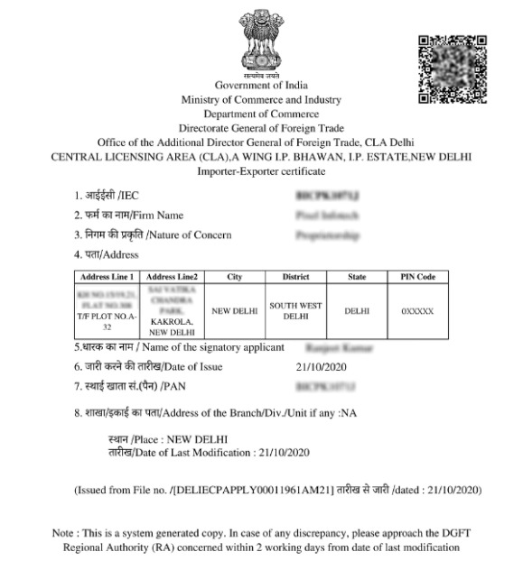 • An Import Export Code (IEC).