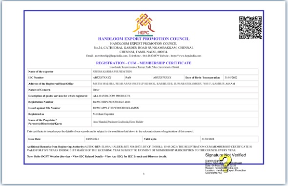 This license is essential for exporters to qualify for government export benefits and incentives and legally engage in the international commerce of handloom products. It establishes your business as a recognized member of HEPC, granting you access to trade facilitation services, financial assistance, and export promotion initiatives that enhance your competitiveness and market reach.