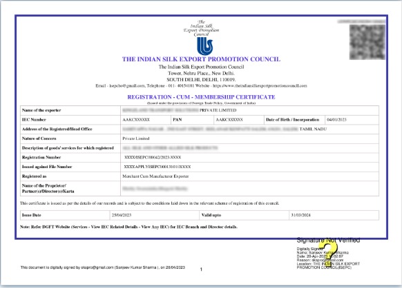The Indian Silk Export Promotion Council (ISEPC) issues a Registration-cum-Membership Certificate (RCMC) as the license for Indian silk export. ISEPC, which was established in 1983 under the Ministry of Textiles, Government of India, is the authorized entity responsible for the promotion and regulation of the global export of Indian silk and allied silk products. This license certifies a business as a recognized exporter, allowing it to legally export silk products and participate in government export initiatives.